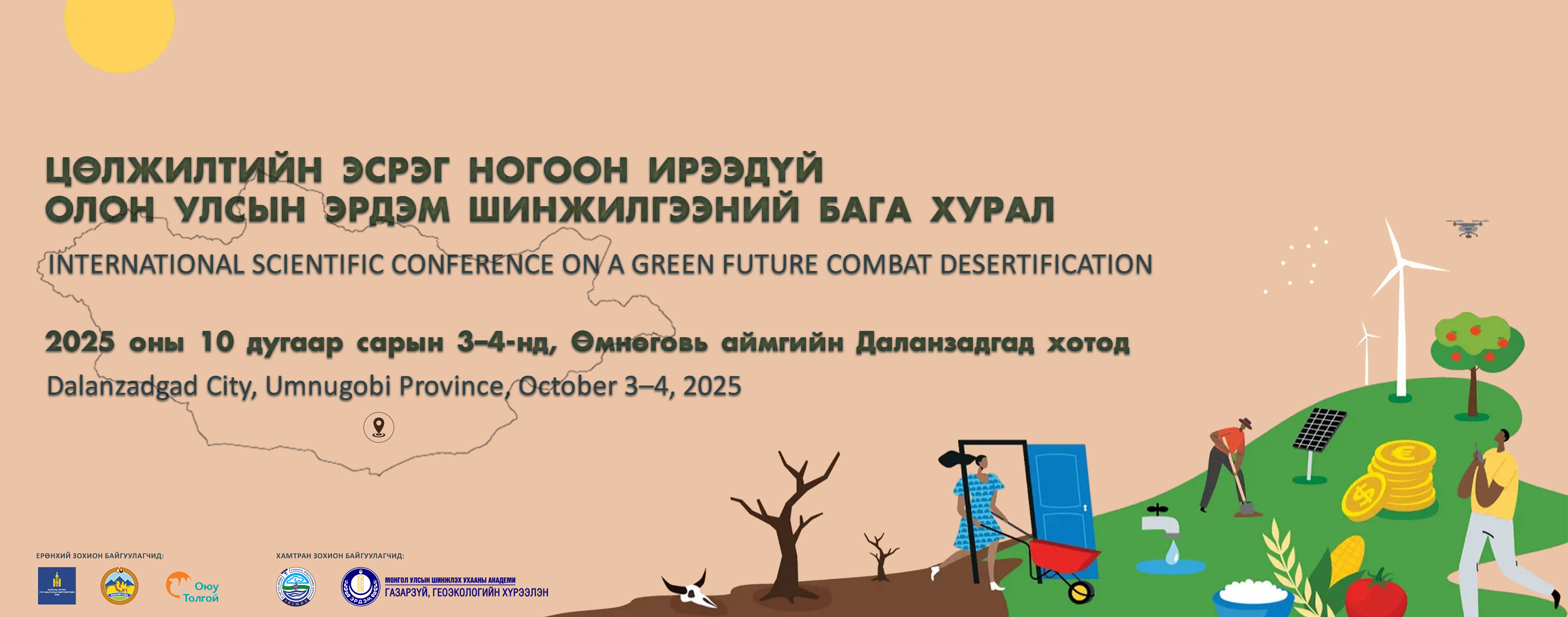 Selected papers will be published in a “Special issue” of the scientific journal "Geography-Geoecology of Mongolia" of the Institute of Geography-Geoecology of the Mongolian Academy of Sciences.